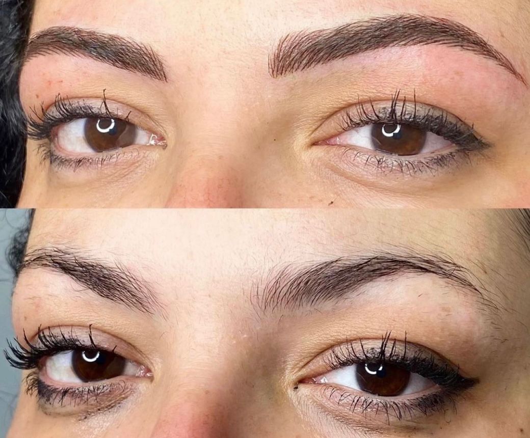Combination brows, also known as combo brows, are a semi-permanent eyebrow treatment that combines microblading and powder brow techniques. The result is a natural-looking brow with more fullness and definition than microblading alone.